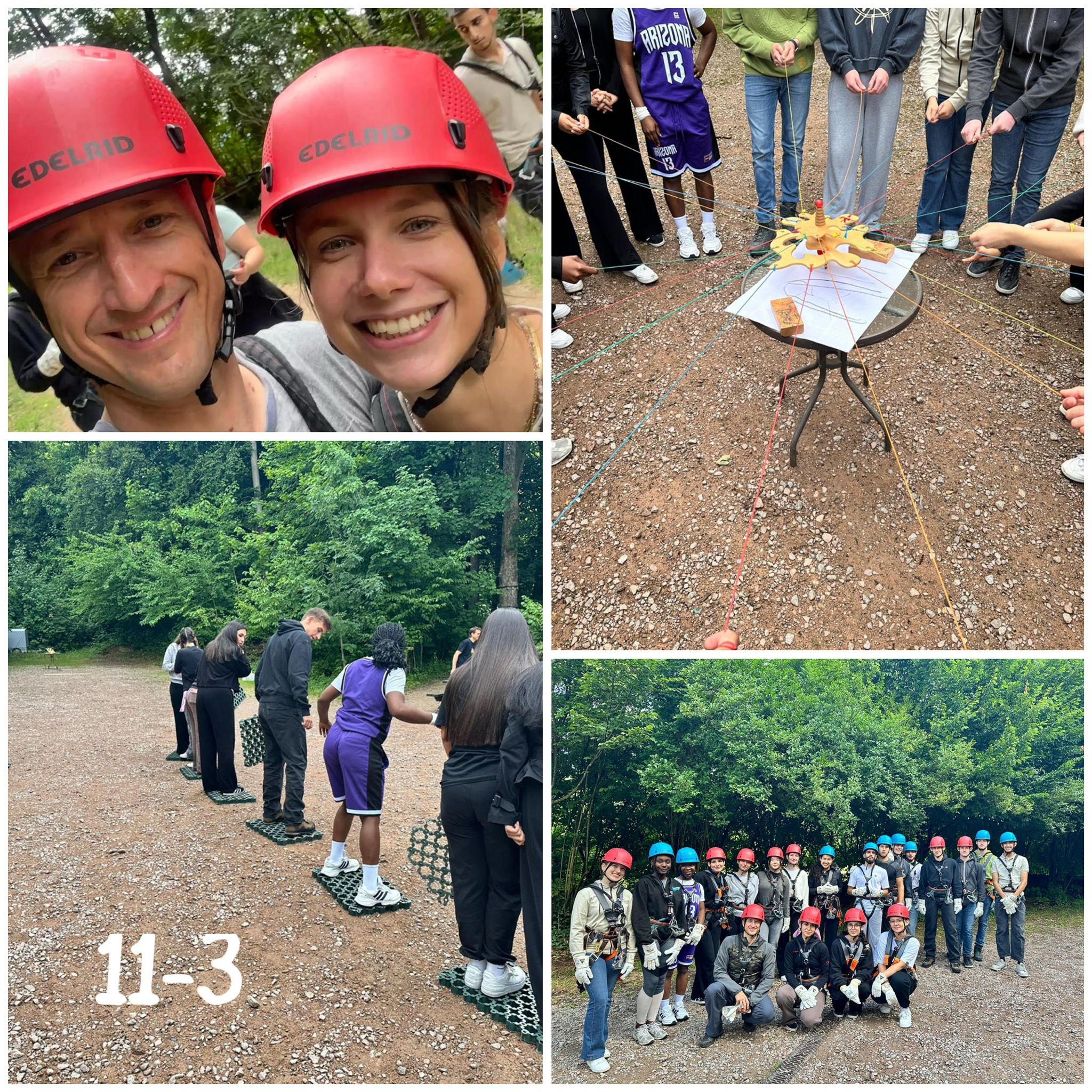 🧗♂️ Tag 2: Klettern stand auf dem Programm! Nach kurzer Einweisung ging’s hoch hinaus. Definitiv ein Highlight der Fahrt! 💪🌲 Am Abend wurde beim Volleyball-Turnier nochmal alles gegeben. Lehrerinnen und Lehrer, mit Schülerinnen und Schülern im Team, Spaß pur! Danach gab es für die Schülerinnen und Schüler einen spannenden Team Challenge Wettbewerb.🔥