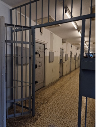 Als erstes wurden wir durch das alte Gebäude geführt. Hier bestand die Einrichtung aus Zellen und Unterbringungen – zum Beispiel einer Zelle für fünf Personen, in der es kein Tageslicht gab und somit das Zeitgefühl komplett verloren ging. In diesen Zellen kam es durch mangelnde Hygiene und Exkremente häufig zu schweren Krankheiten. Knie-, Steh-, Wasser- und Hitzezellen dienten als Form der Freiheitsbeschränkung und Folterung, um den Willen durch körperliche Schmerzen zu brechen.
