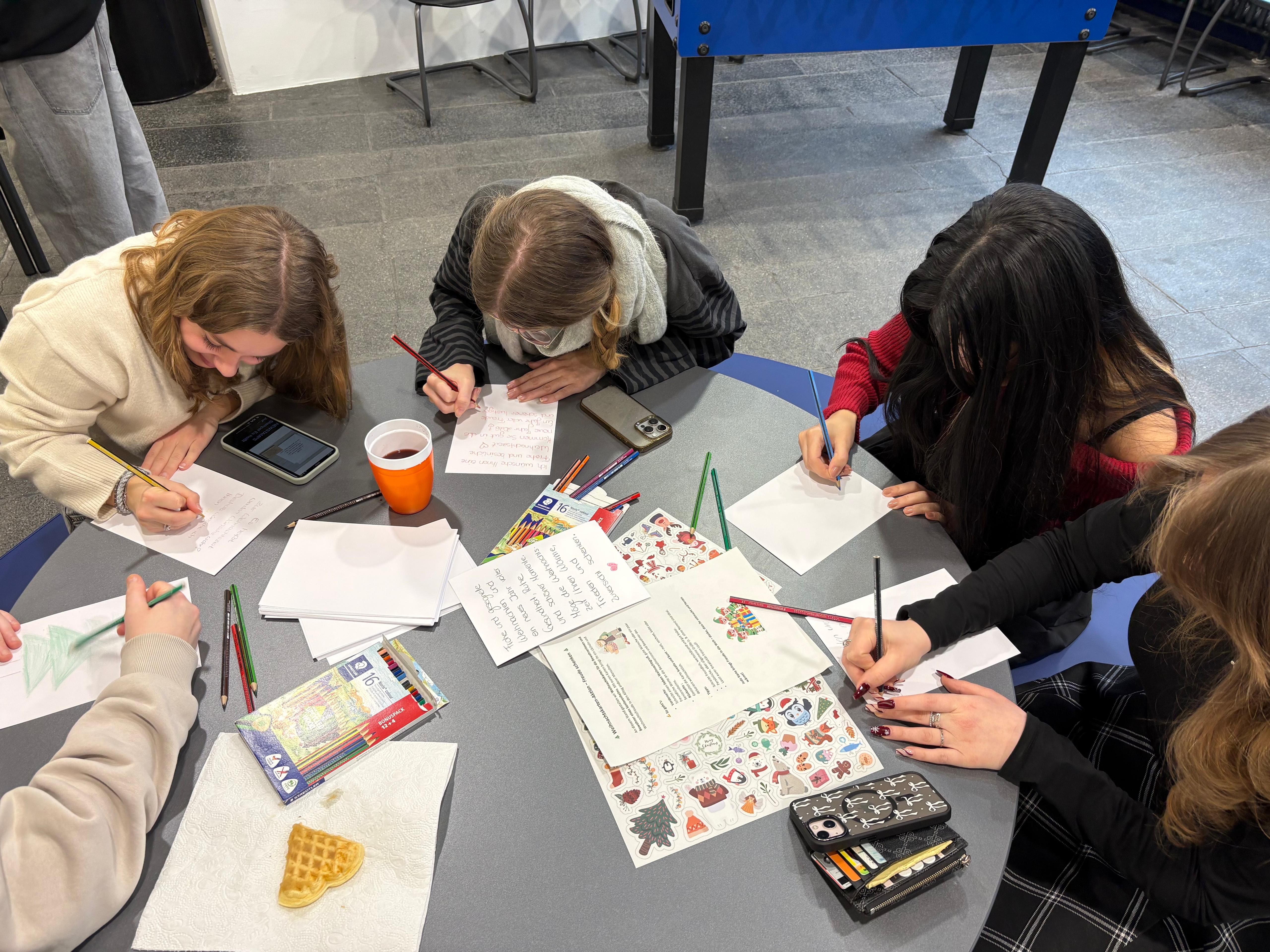 Ein besonderer Schwerpunkt des Weihnachtsmarktes lag auf dem sozialen Engagement der SMV ❤️. An einem Bastelstand hatten die Schülerinnen und Schüler die Möglichkeit, individuelle Weihnachtskarten 🎨✂️ zu gestalten und diese mit persönlichen, wertschätzenden Texten zu versehen. Mit viel Kreativität und Herz entstanden zahlreiche Karten, die echte Weihnachtsfreude vermittelten.