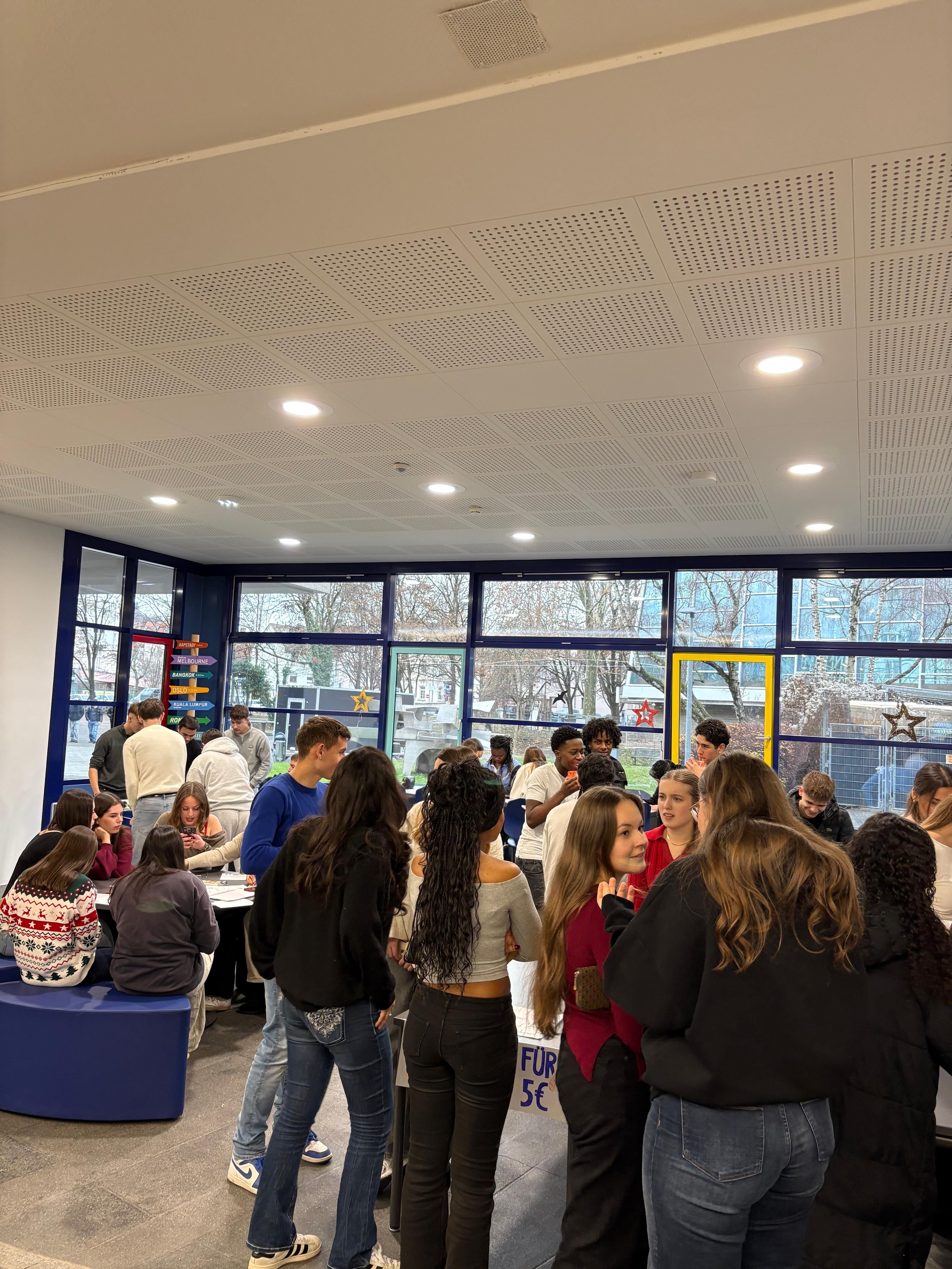 Auf Initiative der SMV fand in diesem Schuljahr erstmals ein kleiner Weihnachtsmarkt 🎄 statt. Mit viel Engagement entstand eine warme, vorweihnachtliche Atmosphäre, die Schülerinnen und Schüler sowie Lehrkräfte mit weihnachtlicher Musik 🎶 auf die bevorstehenden Feiertage einstimmte ✨.
