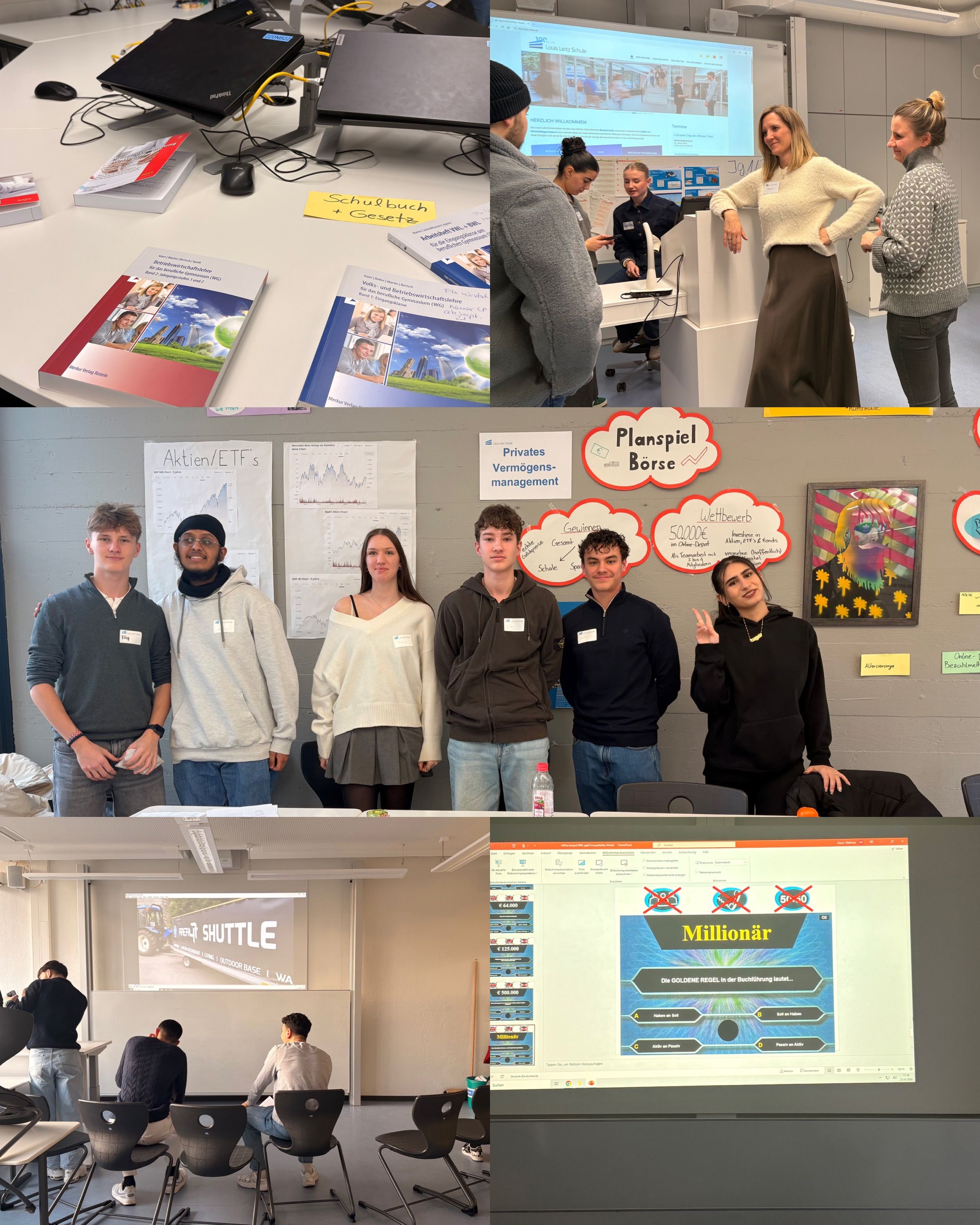 Antworten darauf erhielten die Gäste beim „Speed-Dating“ mit Schülerinnen und Schülern der Klasse 12-2 ⏱️, die nicht nur Einblicke in BWL und VWL gaben, sondern auch allgemeine Fragen zum Schulleben an der LLS beantworteten. An weiteren Ständen erklärten Schülerinnen und Schüler z. B. anschaulich wirtschaftliche Grundlagen wie den linearen Kostenverlauf 📈. Das neu erworbene Wissen konnte anschließend in einem Quiz angewendet werden 🧠, das – angelehnt an eine bekannte Quizshow – mit der spannenden „1-Million-Euro-Frage“ seinen Höhepunkt fand 💡.