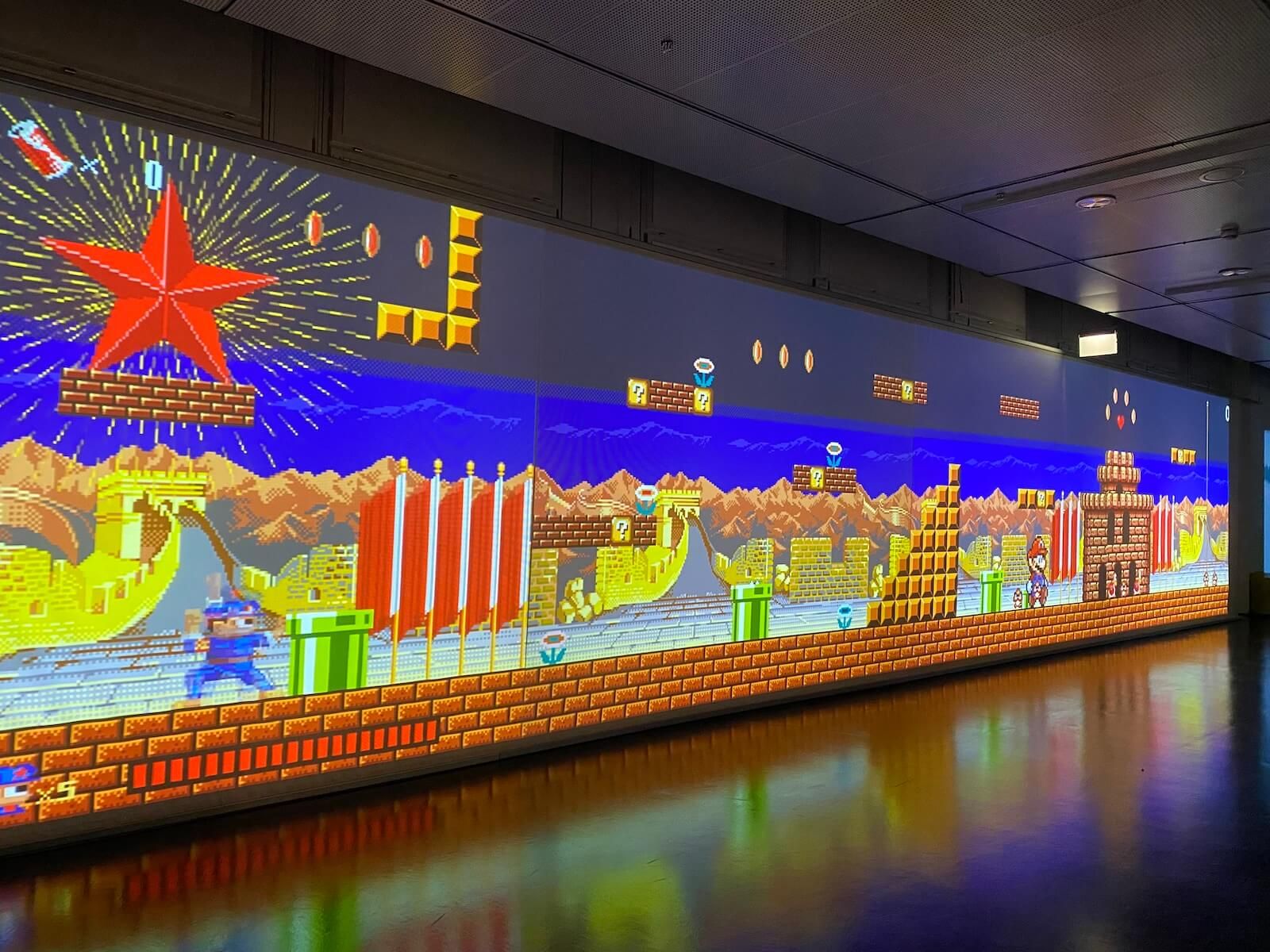 Dort angekommen wurde zunächst das Zentrum für Kunst und Medien (ZKM) besucht. Nach einer einstündigen Führung zu den Themen „Renaissance 3.0“ und „zkm_gameplay. the next level“ konnte das Kollegium die Ausstellungen auf eigene Faust erkunden. Die Ausstellung zum Thema „Renaissance 3.0“ verdeutlichte auf anschauliche und eindrucksvolle Weise die Verschmelzung von Kunst und Wissenschaft im 21. Jahrhundert. Besonders fasziniert waren die Lehrkräfte von der Computerspielabteilung im Rahmen der Ausstellung „zkm_gameplay. the next level“, in welcher sich über Spiele aus unterschiedlichsten Jahrzehnten informiert und ausgetauscht werden konnte. Dabei ließen es sich die Lehrkräfte nicht nehmen, zahlreiche Spiele, die einige noch aus Ihrer Kindheit kannten, selbst zu spielen.