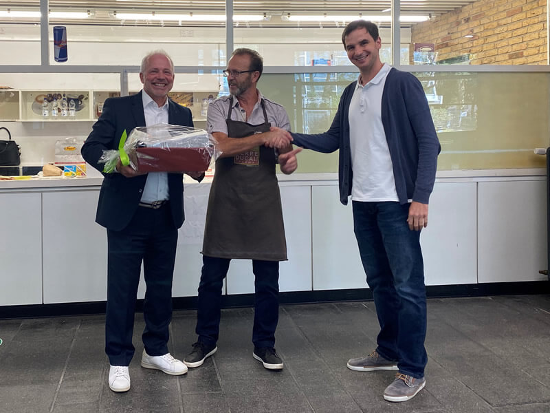 20 Jahre lang haben Frau und Herr di Maria den Kiosk an unserer Schule betrieben und sich mit viel Liebe und Engagement eingebracht. Als Herr di Maria an seinem letzten Tag gefragt wurde, wie es denn bei ihm weiterginge, antwortet er: „Ich bin noch jung, das kann ich mir noch überlegen. Erstmal werde ich aber ausschlafen.“