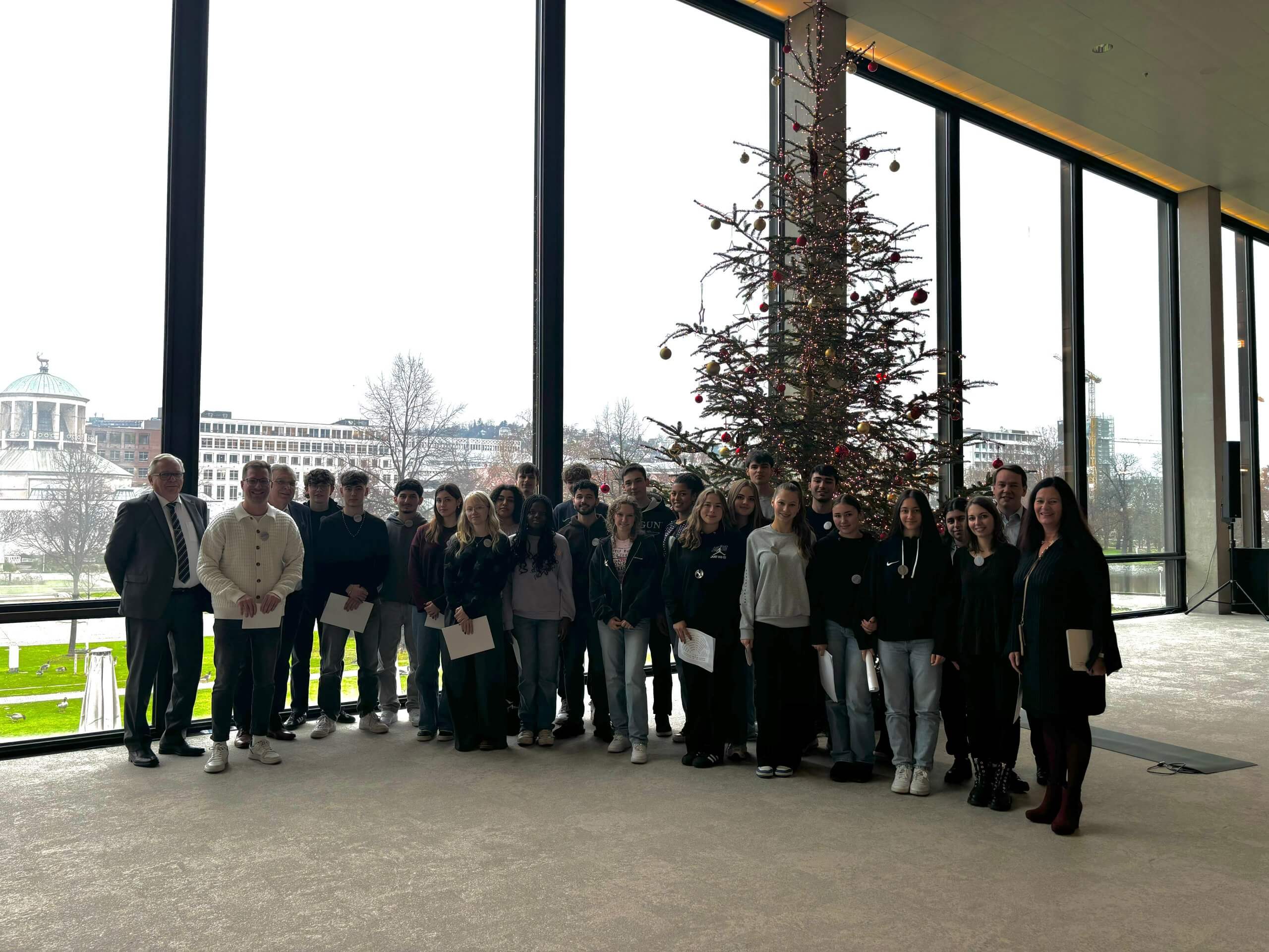 Am Freitag, den 13.12.2024, besuchte die Klasse 12-3 des Wirtschaftsgymnasiums den Landtag von Baden-Württemberg. GG-Lehrer Herr Helber und die Klassenlehrerin Frau Pöndl begleiteten die Klasse bei der Exkursion ins Landesparlament im Herzen der Landeshauptstadt Stuttgart.