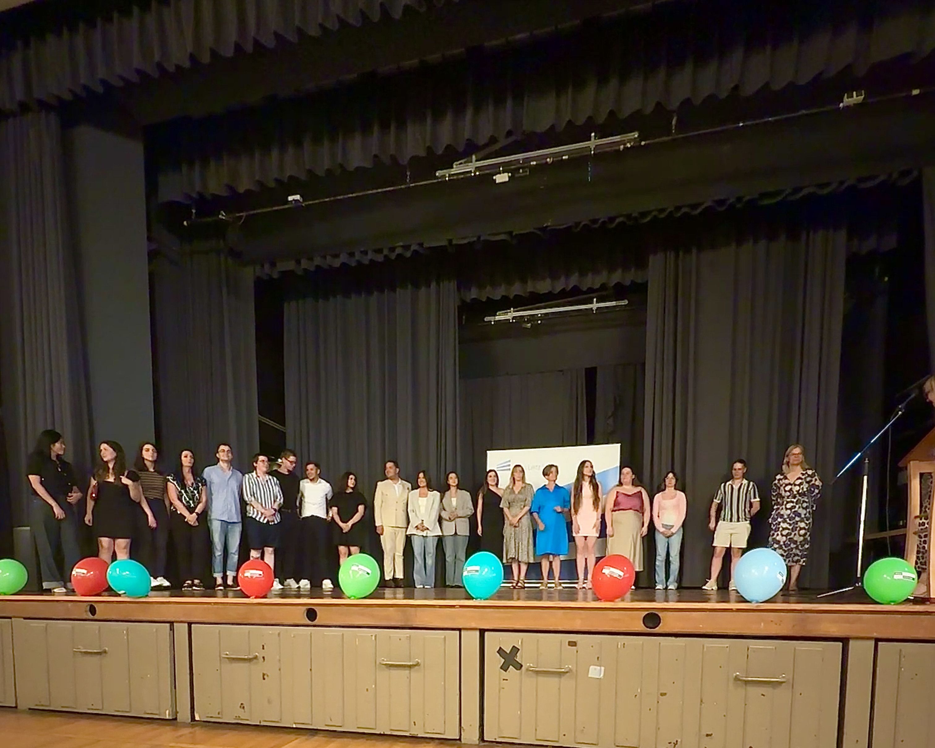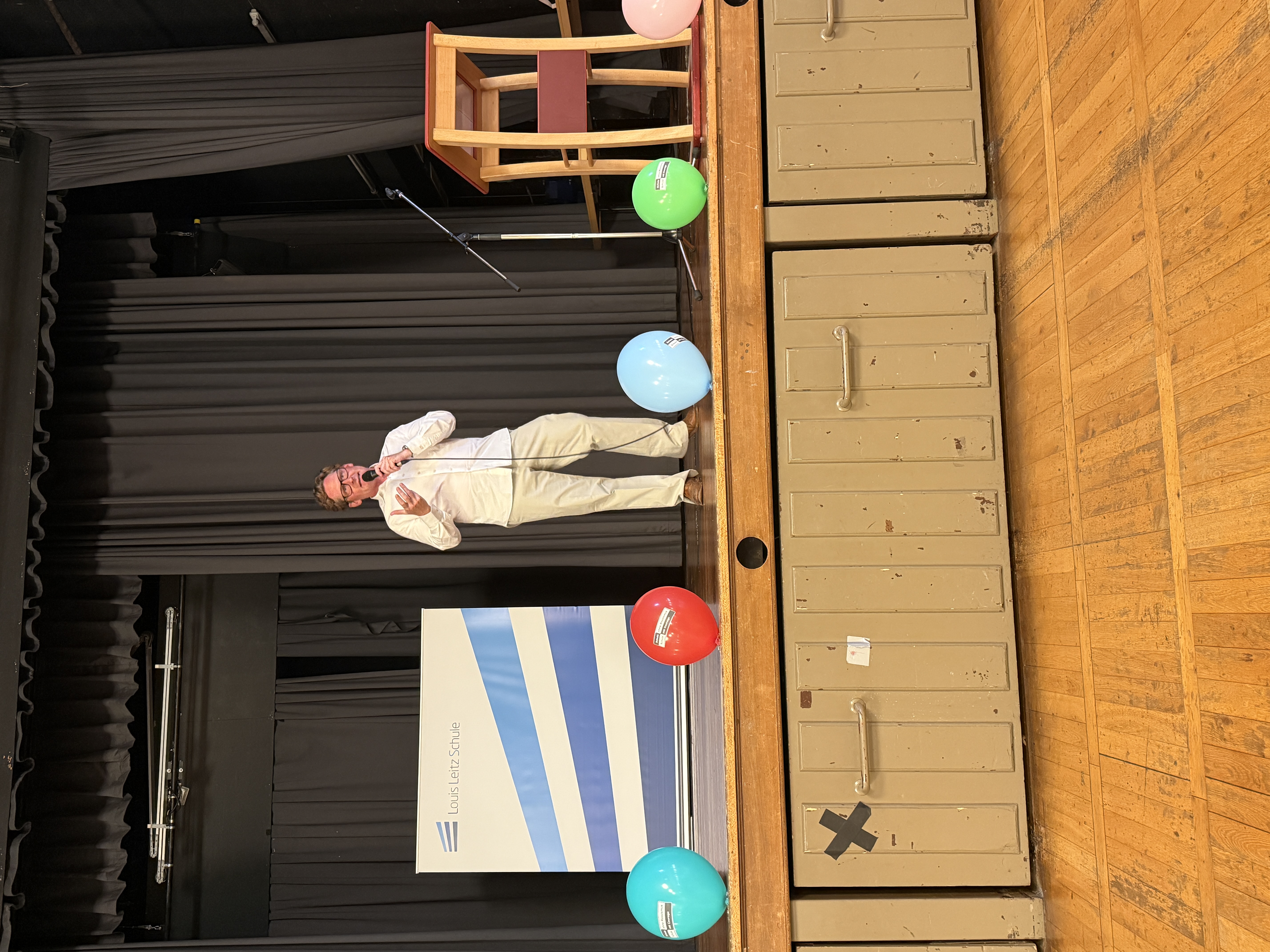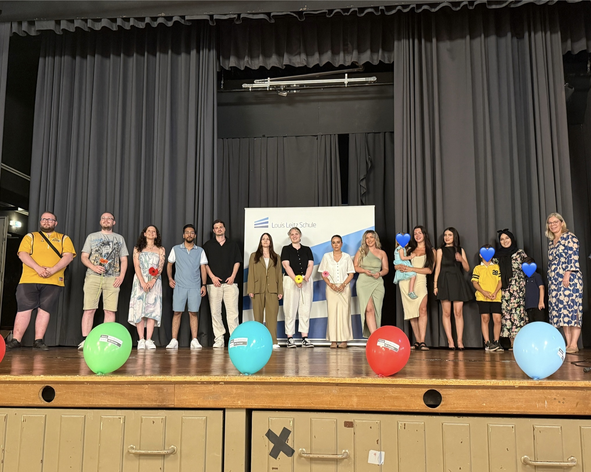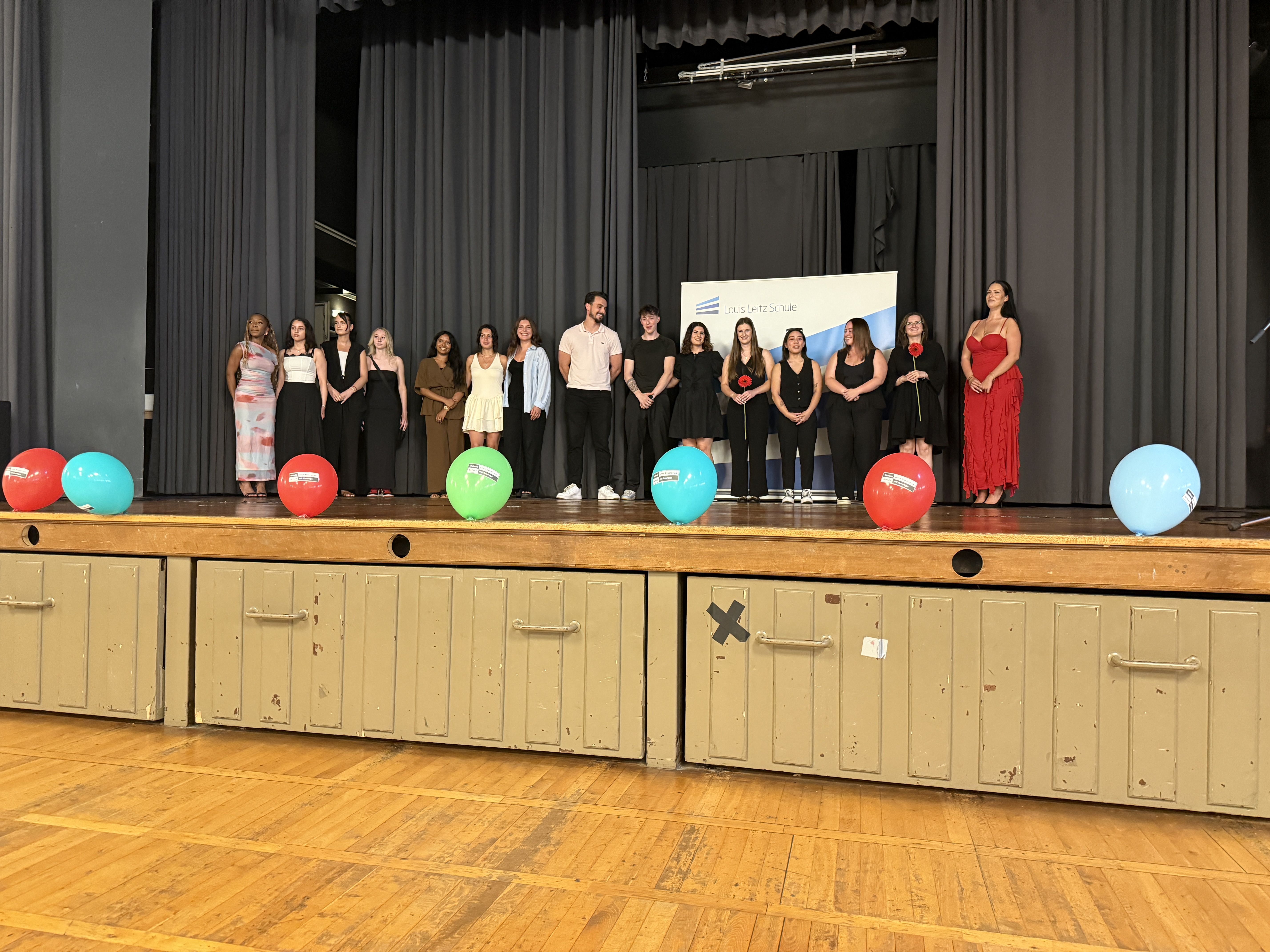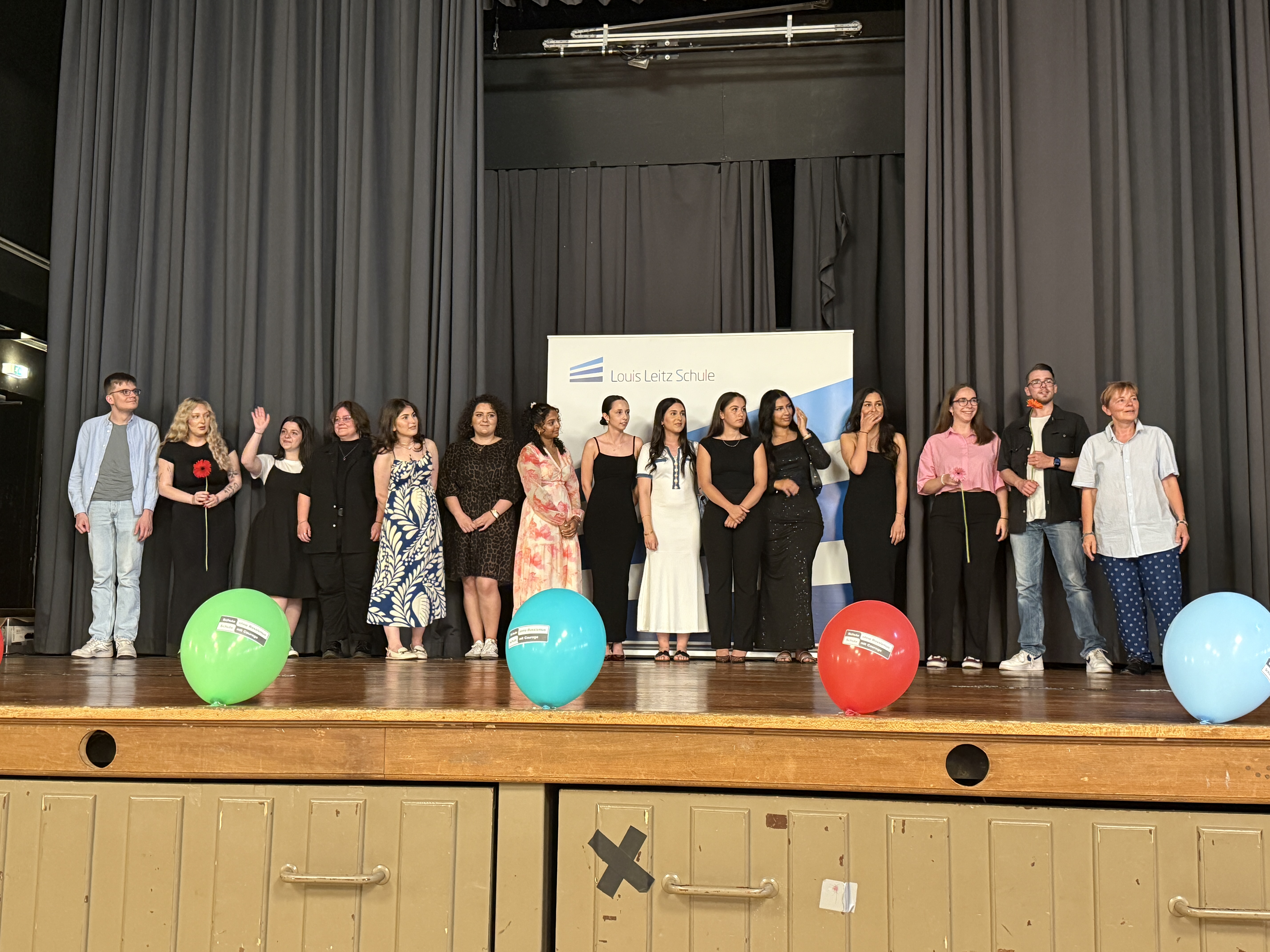 Herr Link berichtete in seiner Rede, dass dieser Erfolg auch zahlenmäßig belegbar sei, lag doch die Bestehensquote des Ausbildungsberufs Personaldienstleistungskauffrau /-mann bei 100 %. Ähnlich erfreuliche Quoten konnten für die Ausbildungsberufe Kauffrau /-mann für Büromanagement und Industriekauffrau /-mann vermeldet werden. Zudem zeigte sich der Erfolg durch die Aushändigung von acht Preisen und 27 Belobigungen. Die Absolventinnen und Absolventen wurden in der Rede zudem ermutigt, für ihre Werte einzustehen, eine Gemeinschaft zu sein und die Vielfalt zu schätzen und zu respektieren. Durch das Nutzen der eigenen Fähigkeiten sowie des eigenen erworbenen Wissens, könne eine positive Veränderung in der Gesellschaft herbeigeführt werden. Dies geht auch mit dem Versprechen der Louis-Leitz-Schule einher, sich aktiv gegen Rassismus und Diskriminierung einzusetzen. Ein Versprechen welches durch die Auszeichnung zur „Schule ohne Rassismus – Schule mit Courage“, welche zu Beginn der Abschlussfeier erfolgte, verdeutlicht wurde. Zum Abschluss seiner Rede erinnerte Herr Link daran, dass jede Absolventin und jeder Absolvent das Potenzial haben, Großes zu erreichen.