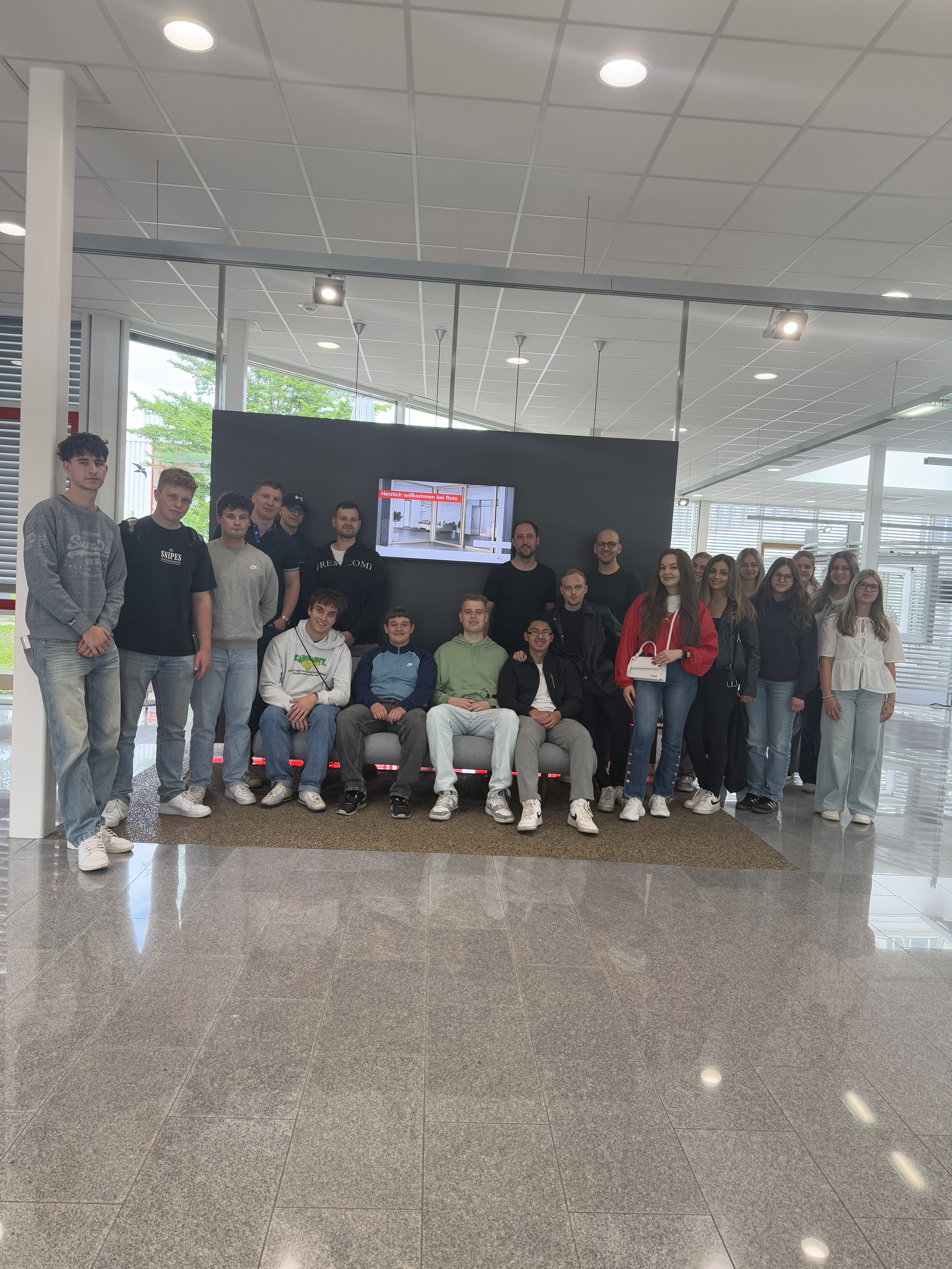 Am Freitag vor den Pfingstferien hatten die Schülerinnen und Schüler der Klasse 2KI03 die Gelegenheit, das Klassenzimmer gegen praktische Einblicke im Rahmen einer Betriebsbesichtigung einzutauschen. In einer spannenden Führung erhielt die Klasse gemeinsam mit ihren beiden Lehrern Einblicke in zentrale Unternehmensbereiche wie die Produktion 🛠️, die Logistik 📦 inklusive Hochregallager 🏗️ und die Qualitätsentwicklung ✅ sowie den Showroom mit den Produkten des Unternehmens. Auch zeigte sich, an welchen Stellen des Produktionsprozesses auf Automatisierungen 🤖 zurückgegriffen wird, um Prozesse zu optimieren.