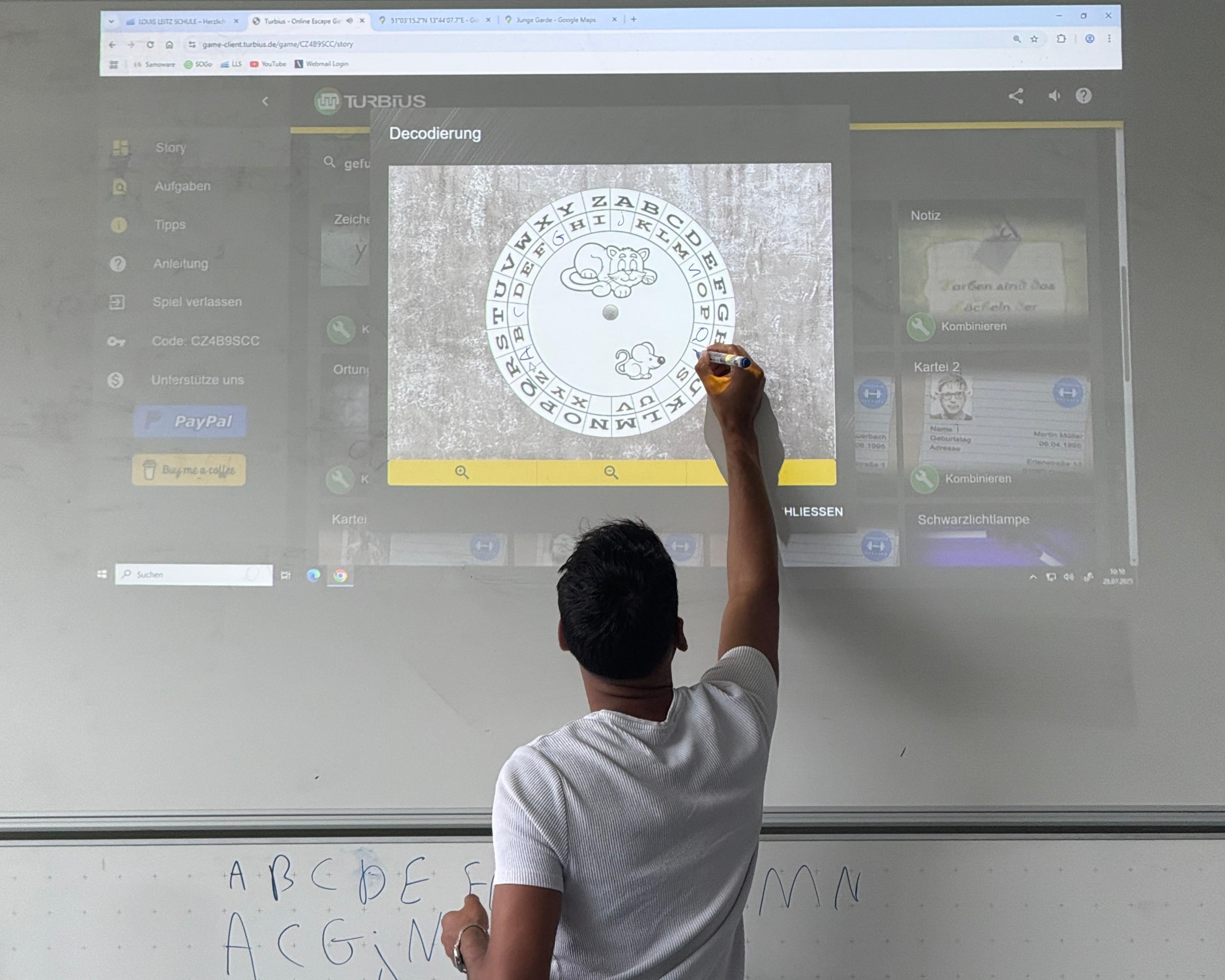 Gleich zu Beginn wartete ein besonderes Highlight auf die Schülerinnen und Schüler: ein schulweites Escape-Game, das klassenweise gelöst werden musste. Ziel war es, eine vermisste Person zu finden – und das unter Zeitdruck! Die Schülerinnen und Schüler knobelten sich durch verschiedene Hinweise, lösten Rätsel und arbeiteten im Team daran, das Geheimnis zu lüften. Kreativität, Zusammenarbeit und logisches Denken waren gefragt. Die Klassen meisterten die Herausforderung mit Bravour - viele davon ganz ohne das Benutzen von Lösungshinweisen.