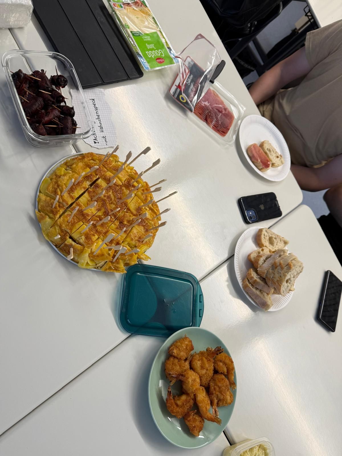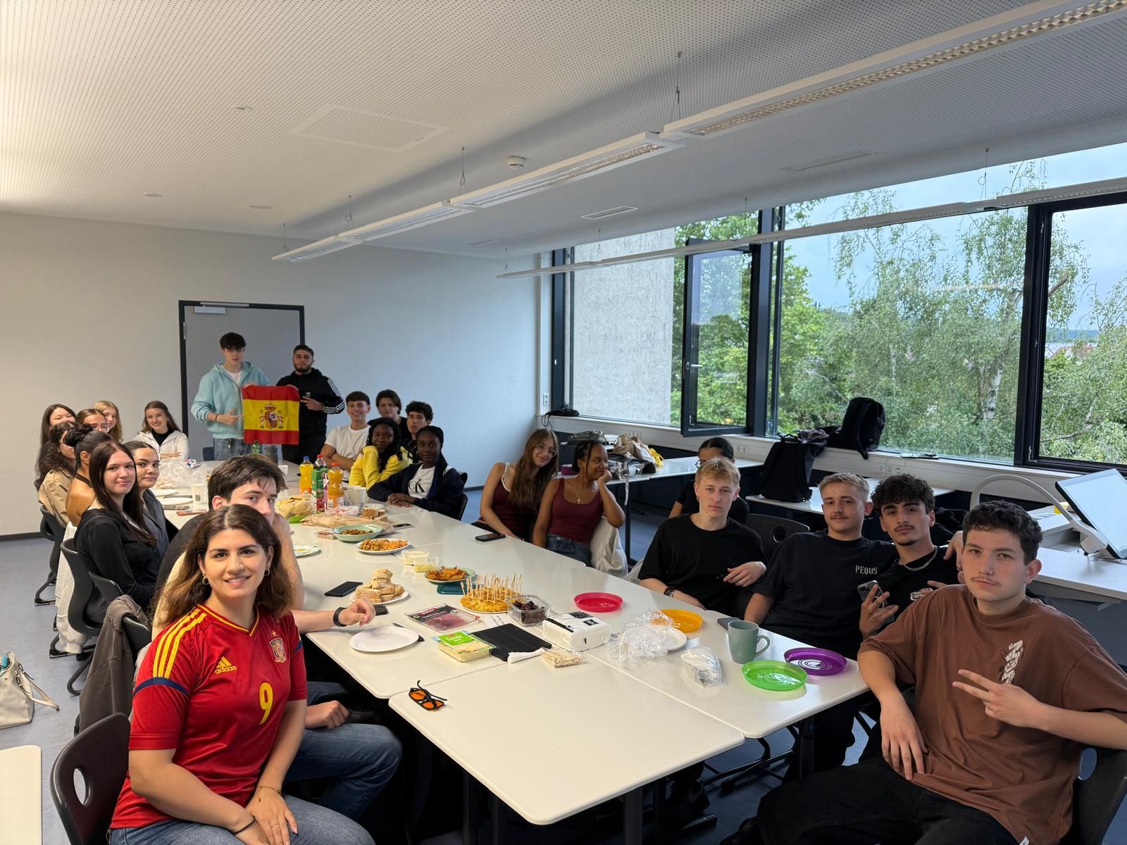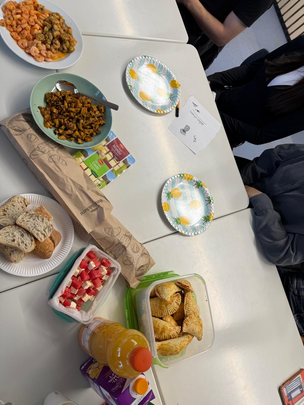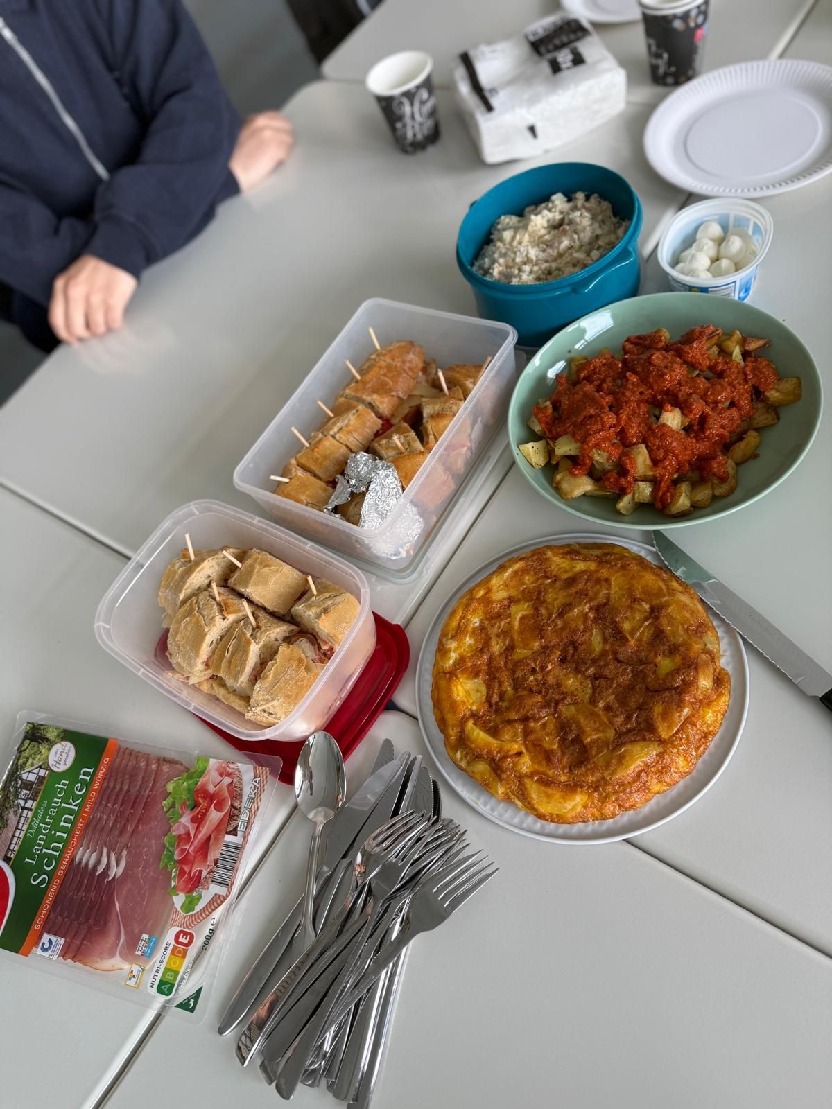 Die Schülerinnen und Schüler hatten in Gruppen verschiedenste Tapas vorbereitet und mitgebracht – von herzhaft bis süß, traditionell bis kreativ. Begleitet wurde das gemeinsame Frühstück von typisch spanischen Getränken, die das mediterrane Flair perfekt abrundeten. ☕🍊