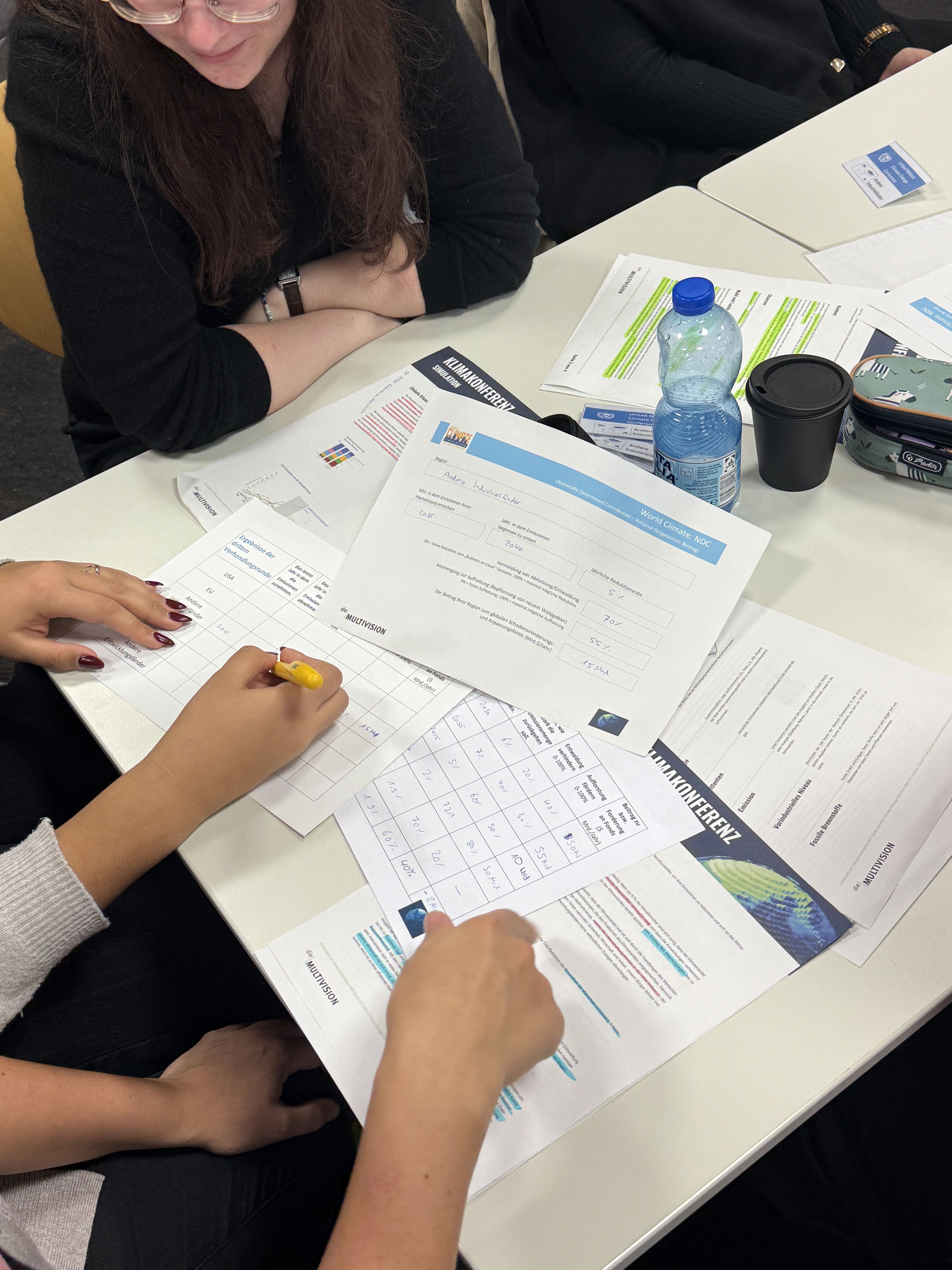 Danach übernahm jede Gruppe die Rolle eines Landes 🌎. Vertreten waren unter anderem die EU, USA, China, Indiensowie Industrie- und Entwicklungsländer. Meine Gruppe durfte die Europäische Union repräsentieren 🇪🇺. Wir bekamen Informationsmaterial mit Zielen und Handlungsmöglichkeiten 📄 und erstellten daraus eine Rede, die wir vor den anderen Delegationen präsentierten 🎤.