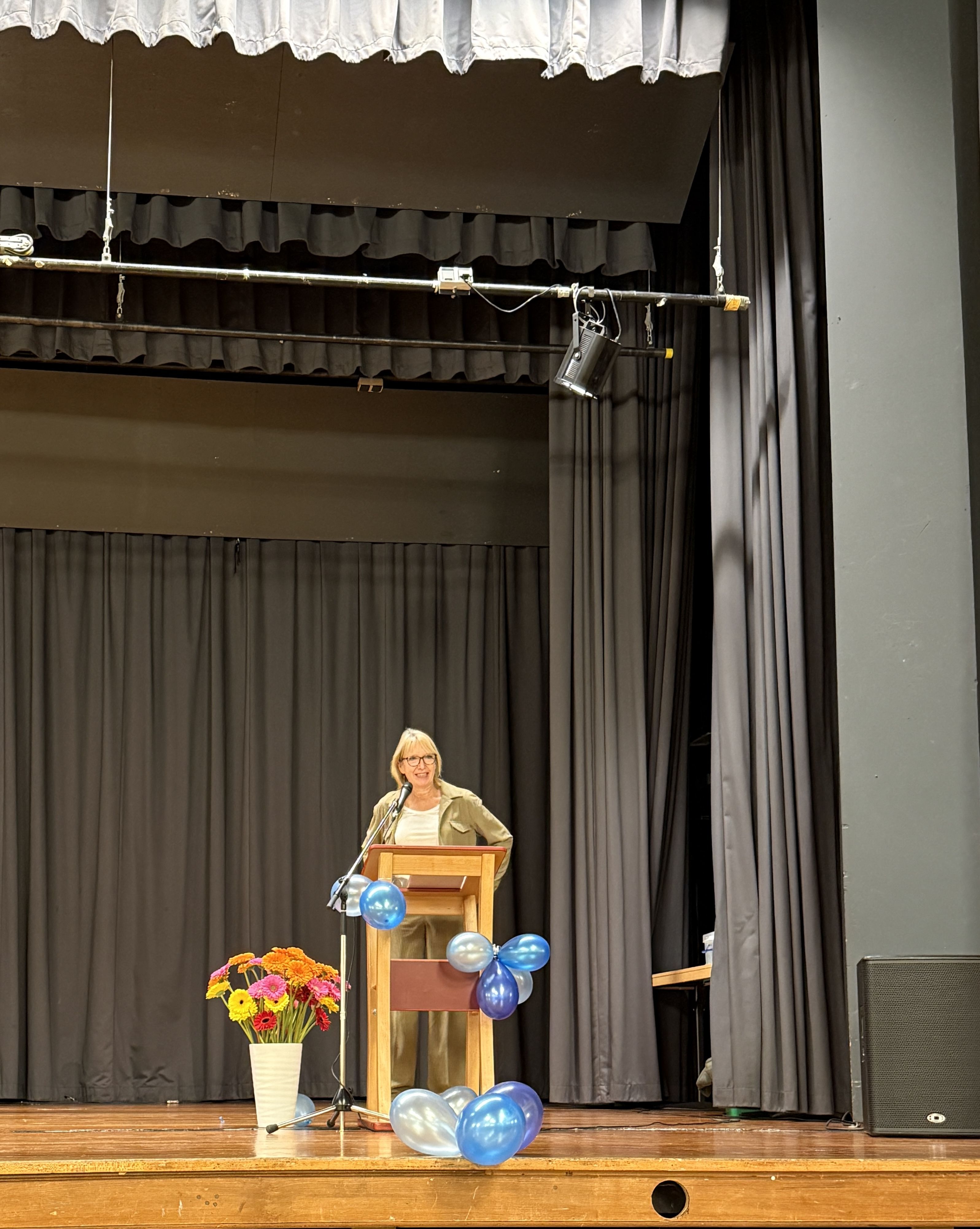 Im Anschluss führte die Abteilungsleiterin Frau Schellhammer durch den Abend. Auch sie würdigte die Leistungen der Schülerinnen und Schüler Die Schülerrede wurde von Francesca Auricchiella und Verona Vrella aus der Klasse 3BM02T gehalten. Die beiden Absolventinnen liesen die Schulzeit an der LLS ebenfalls Revue passieren. Sie erinnerten an die vielen großartigen Momente, die Reise des Wachstums vom ersten bis zum letzten Schultag sowie daran, wie viel jede und jeder Einzelne schon erreicht hat. Zudem betonten sie, dass es nun an der Zeit sei, Verantwortung zu übernehmen und den eigenen Platz im Berufsleben einzunehmen. Abschließend dankten die Rednerinnen im Namen aller Absolventinnen und Absolventen ihren Freunden und Familien sowie den Lehrkräften, Ausbilderinnen und Ausbildern.