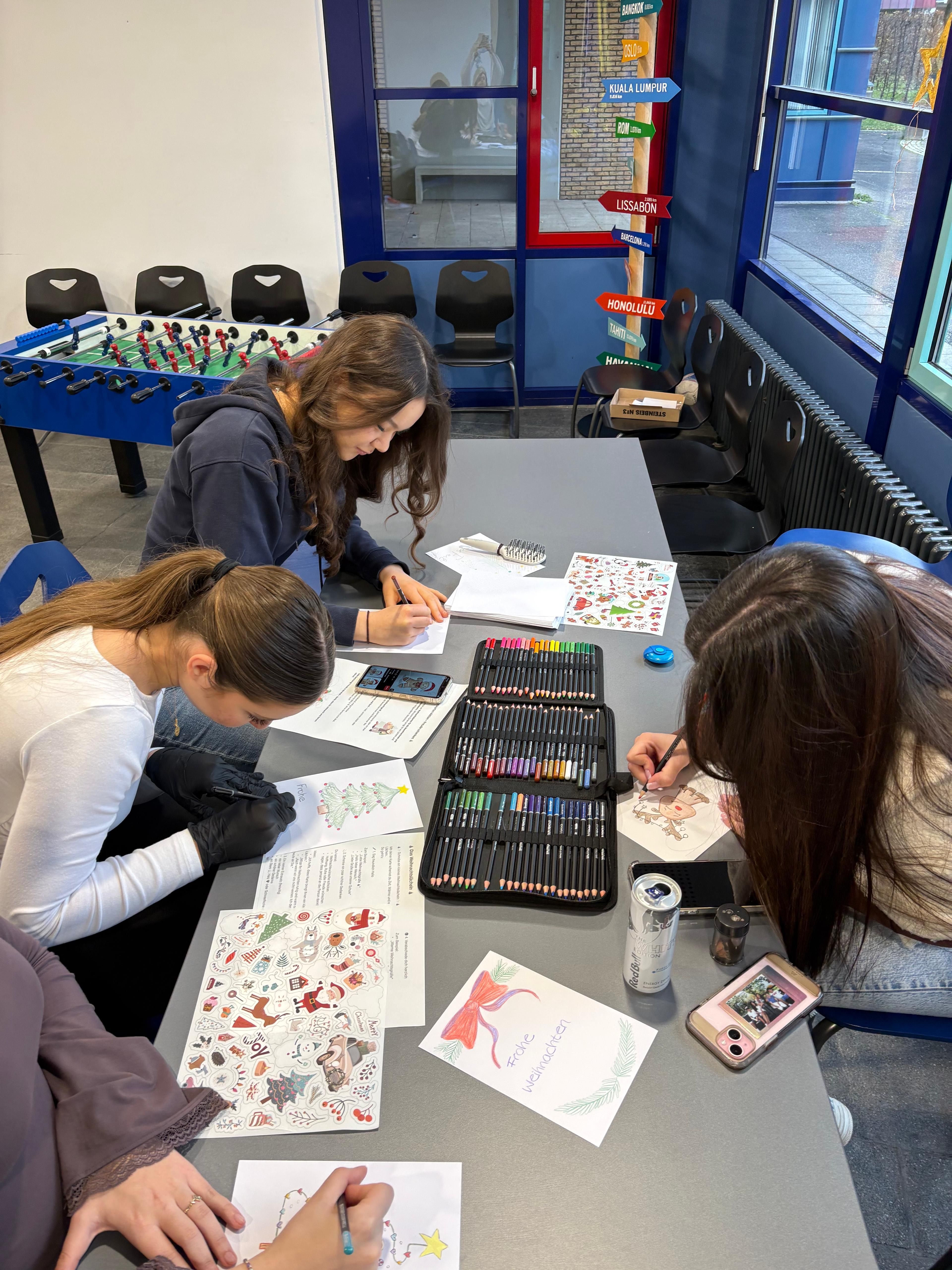 Ein besonderer Schwerpunkt des Weihnachtsmarktes lag auf dem sozialen Engagement der SMV ❤️. An einem Bastelstand hatten die Schülerinnen und Schüler die Möglichkeit, individuelle Weihnachtskarten 🎨✂️ zu gestalten und diese mit persönlichen, wertschätzenden Texten zu versehen. Mit viel Kreativität und Herz entstanden zahlreiche Karten, die echte Weihnachtsfreude vermittelten.