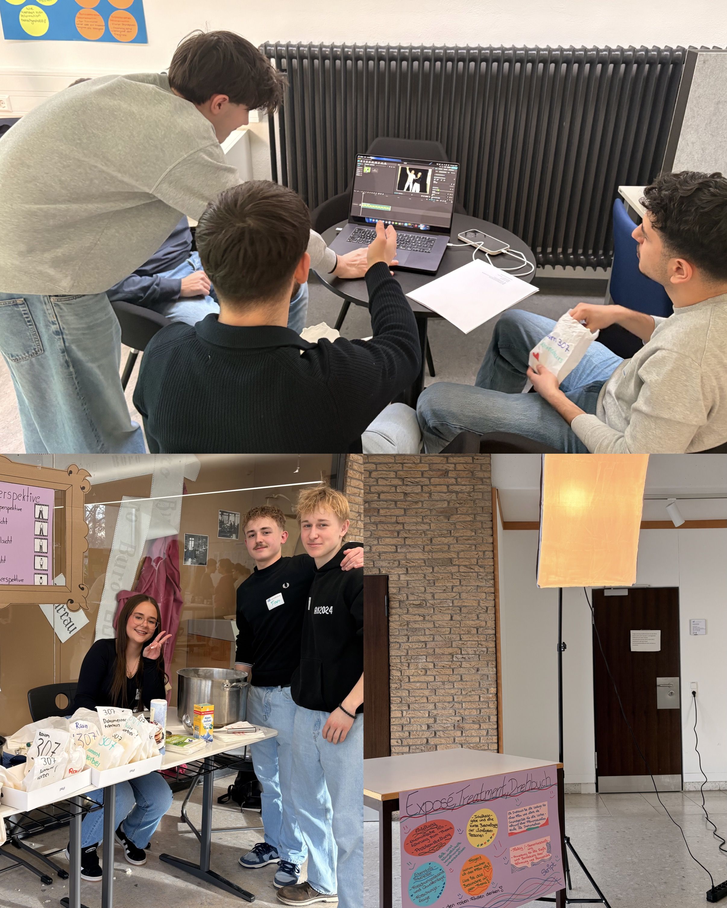 Die sprachlichen Fächer Spanisch, Französisch und Deutsch sowie das Fach Privates Vermögensmanagement präsentierten sich gemeinsam mit den Lehrkräften anhand anschaulich gestalteter Plakate 🌍🗣️. Ergänzt wurde das Angebot durch ein Schulquiz der SMV 🎲. Auch die Naturwissenschaften sowie die Fächer Mathematik, Informatik und Sport luden mit vielfältigen Mitmachaktionen zum Ausprobieren ein 🔬💻🏃♂️ – darunter die Erstellung eines chemischen Kunstwerks 🎨 oder erste Schritte im Programmieren. Der Seminarkurs „Film“ bot die Möglichkeit, Fotos vor einem Greenscreen aufzunehmen und beim Schnitt eines Films zuzusehen 🎬.