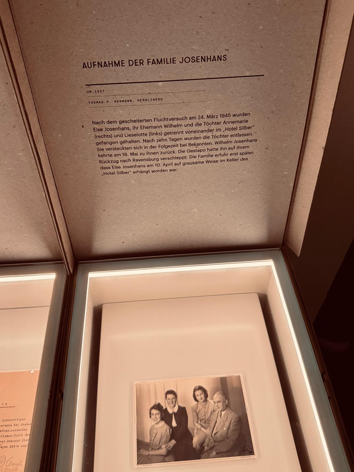 Ein besonders bewegendes Beispiel aus dem Hotel Silber ist das Schicksal von Else Josenhans: Sie war Jüdin und mit einem nichtjüdischen Mann verheiratet („Mischehe“), wodurch sie zunächst teilweise vor Deportationen geschützt war. Als sich die Verfolgung jedoch zuspitzte und ihr die Einweisung in ein Arbeitslager drohte, wurde sie im Frühjahr 1945 von der Gestapo festgenommen und in das Hotel Silber gebracht. Dort blieb sie in Haft und wurde am 10. April 1945 – nur wenige Wochen vor Kriegsende – von der Gestapo ermordet. Heute wird an sie in Stuttgart durch einen Stolperstein sowie durch ihr Gedenkenvor Ort erinnert, damit ihr Schicksal nicht in Vergessenheit gerät. Ihr Fall zeigt, wie brutal das Regime selbst bis zuletzt vorging.